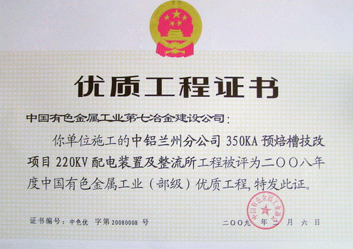 中铝兰州分公司350KA预焙槽技改项目220KV配电装置及整流所工程