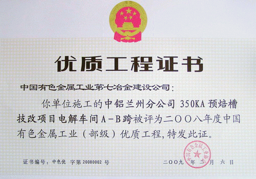 中铝兰州分公司350KA预焙槽技改项目电解车间A-B跨