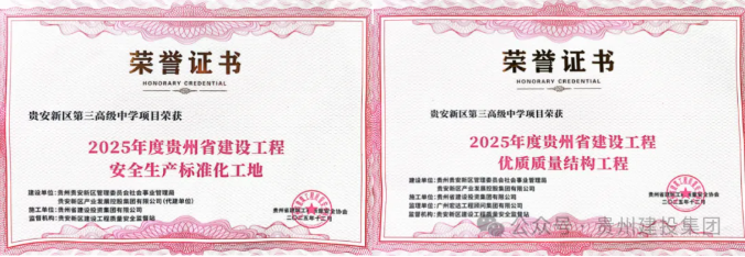 近日,贵州建投集团在2025年度安全质量管理领域喜获佳绩,连续获得多项省级重要荣誉,其中包括“贵州省房屋市政工程安全文明样板工地”6项、“贵州省建筑工程优质质量结构工程”6项、“建设工程安全生产标准化工地学习交流项目”1项。这一系列成果集中展现了集团在工程安全管控、质量提升与标准化建设方面的深厚实力与行业领先地位,为推动行业高质量发展树立了实践标杆。
