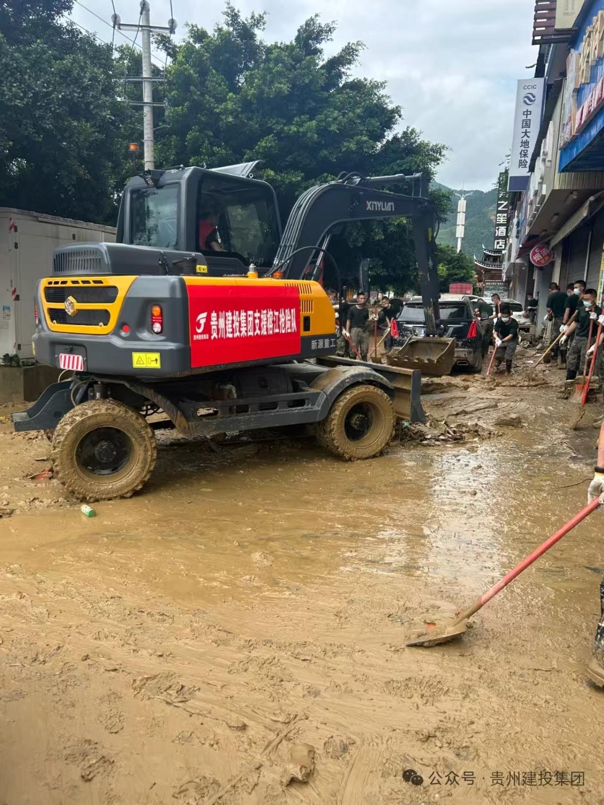 截至发稿时,贵州建投集团已投入挖掘机、装载机、铲车等大型机械设备,争分夺秒开展清淤抢险任务,全力配合地方政府恢复灾后秩序。