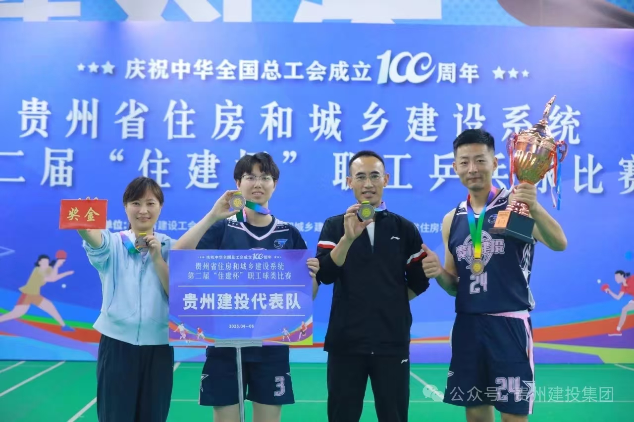 6月22日,庆祝中华全国总工会成立100周年贵州省住房城乡建设系统第二届“住建杯”职工球类比赛圆满落幕。贵州建投集团工会积极响应号召,组织职工踊跃参与羽毛球、篮球、足球三大项目角逐,充分展现出贵州建投人团结拼搏、奋勇争先的良好风貌。最终,荣获羽毛球比赛团体行业组第三名的好成绩,谢斌斩获羽毛球男单亚军,谢启祥、艾海夺得羽毛球男双亚军;足球、篮球比赛均小组出线,同时集团工会荣获“优秀组织奖”。