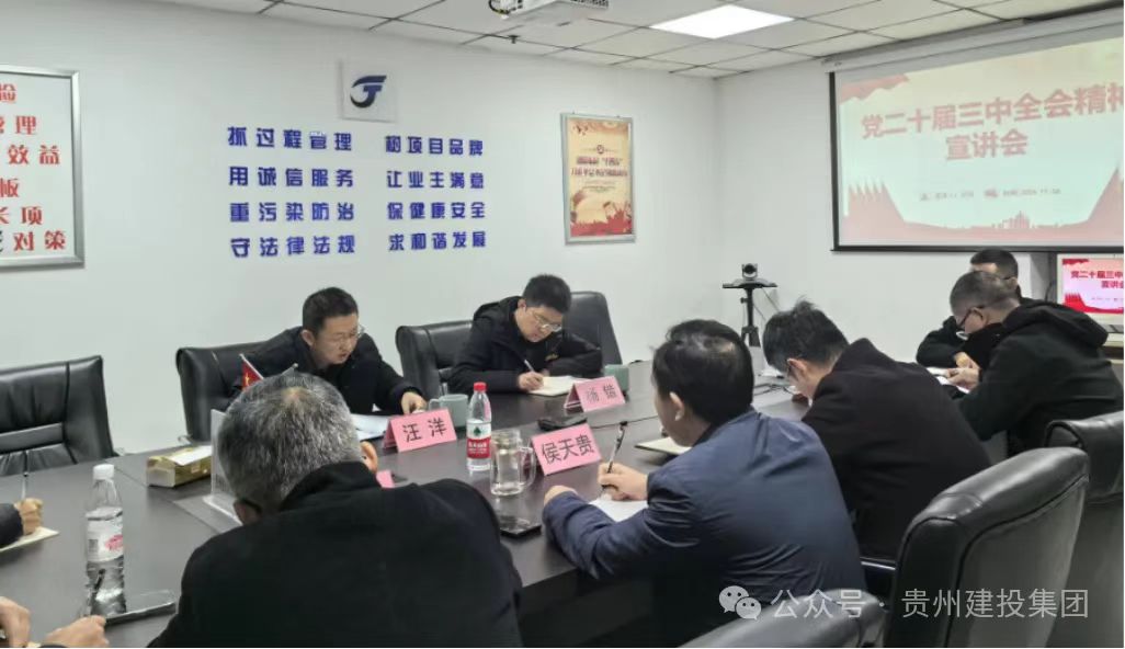 11月26日,贵州建投集团总工程师汪洋在重庆公司党支部专题宣讲党的二十届三中全会精神。重庆公司党支部班子成员、党员代表参加会议。