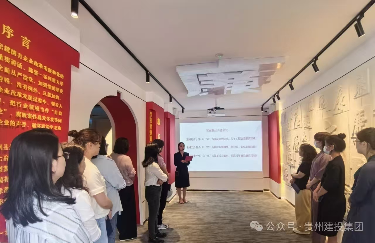 活动中,向家属们发放了《贵州建投集团家庭廉洁共建倡议书》,呼吁家属们发挥家庭“廉内助”作用,共同守护家庭廉洁港湾,并组织家属们进行“树清廉家风·创清廉建投”集体签名。在廉洁教育馆序厅,观看了家风警示教育片《黄大发——廉洁家风好榜样》。在警示厅,集团“青廉”讲解员通过深入剖析身边发生的典型案例等内容,针对集团因治家不严、家风不正引发的腐败问题,生动地向参观家属展现腐败行为给家庭、个人和集团带来的严重危害。一个个触目惊心的案例,让家属们深刻认识到廉洁家风对家庭幸福和企业发展的重要性,起到了强烈的警示作用。家属们纷纷感慨这些案例带来了很大的震撼,并表示作为领导干部家属,一定要当好“贤内助”“廉内助”,把好家庭廉洁关。